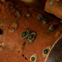З розвитком хвороби на корі дерева спостерігаються дрібні сірі нарости.